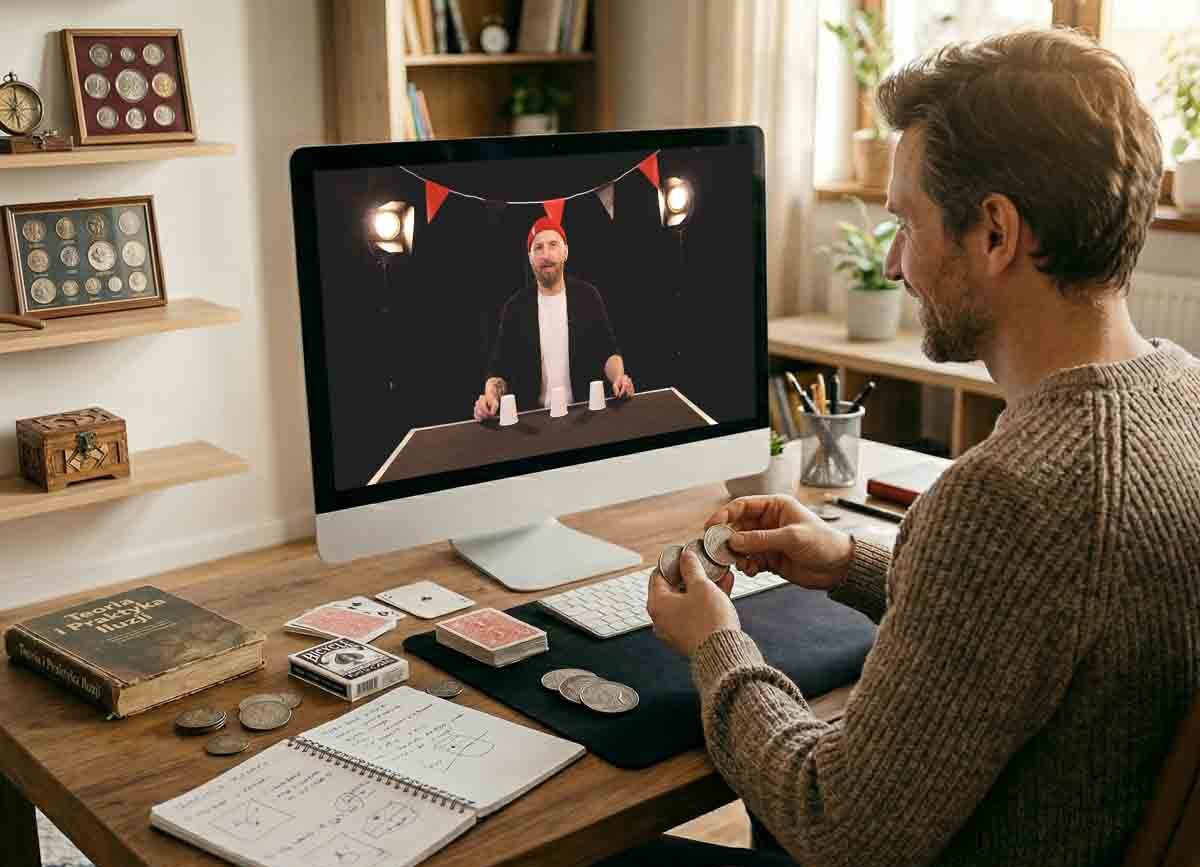 Czy zastanawiałeś się kiedyś, jak to jest mieć w kieszeni „supermoc”, która w ułamku sekundy skupia na Tobie uwagę całego pokoju? Zapomnij o plastikowych rekwizytach. Ten kurs to Twoja przepustka do świata profesjonalnej iluzji modern-style, gdzie narzędziem jest Twój umysł, dłonie i przedmioty, które masz pod ręką.